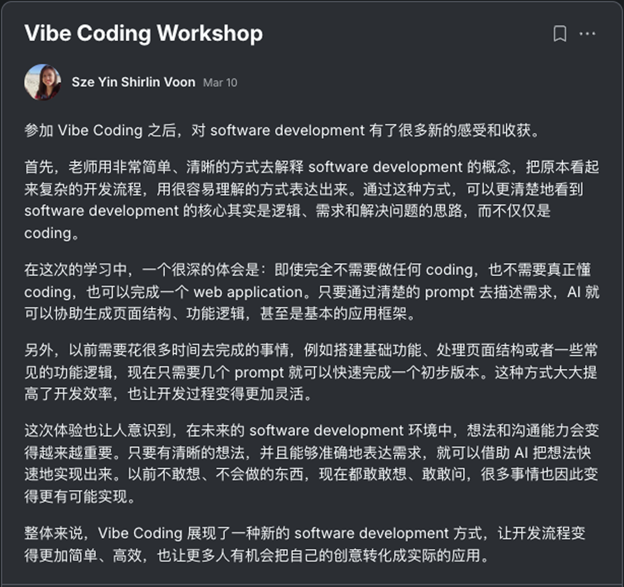 “以前觉得 coding 很难,要去 YouTube、Facebook 甚至问同行朋友才搞得懂;现在原来不用求那么多人,直接在几个 apps 里面就可以学到。”